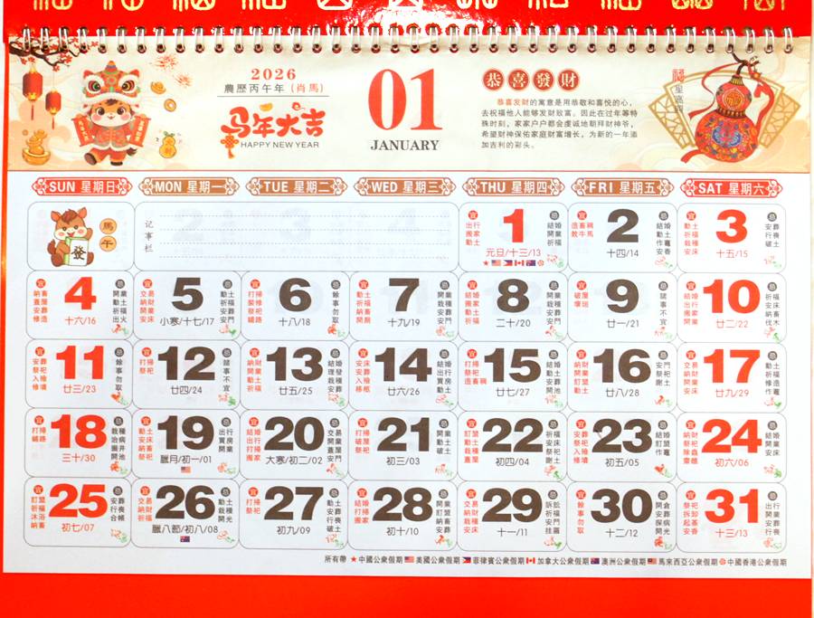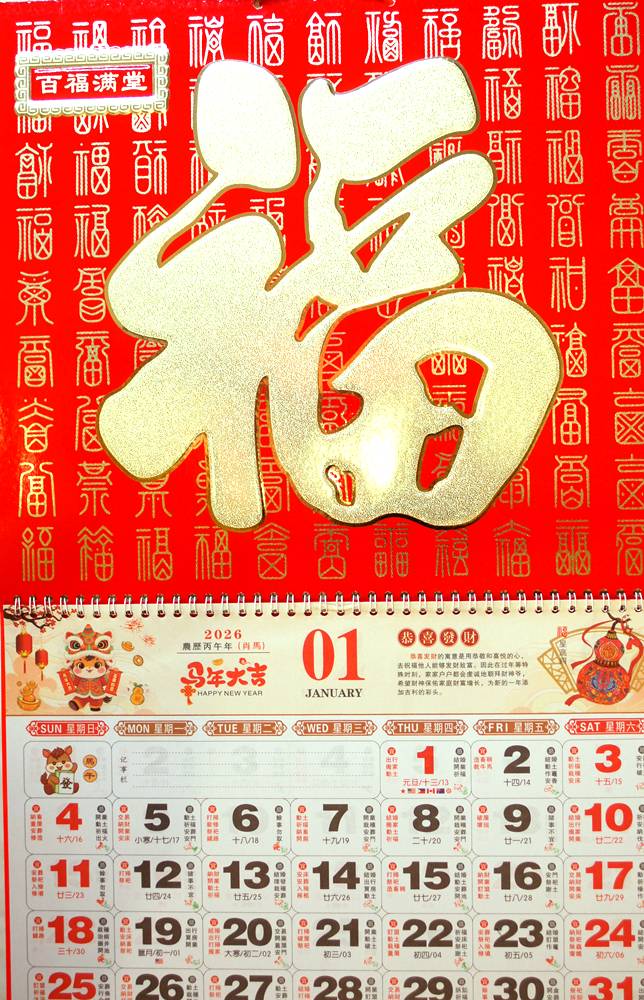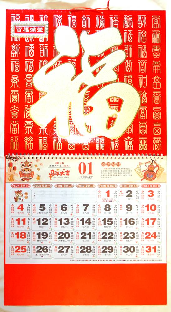 開運風水 2026年度版 中国縁起 壁掛けカレンダー 「金箔 百福」 ※画像更新中