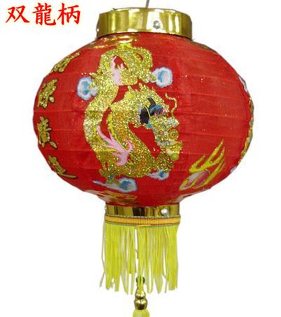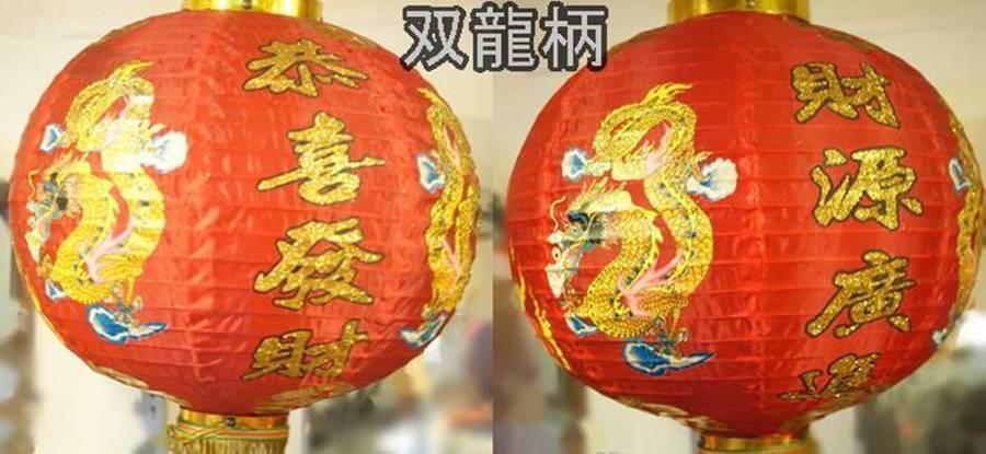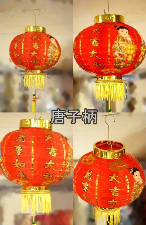 このランタンは、お目出度い【花開富貴】【双龍】【唐子】【花鳥】【桃花】【九魚】などをモチーフにした布製ランタンです。柄は2個お任せになります。
