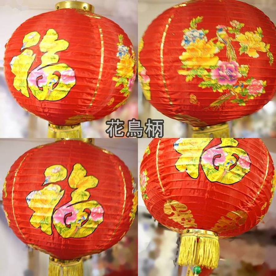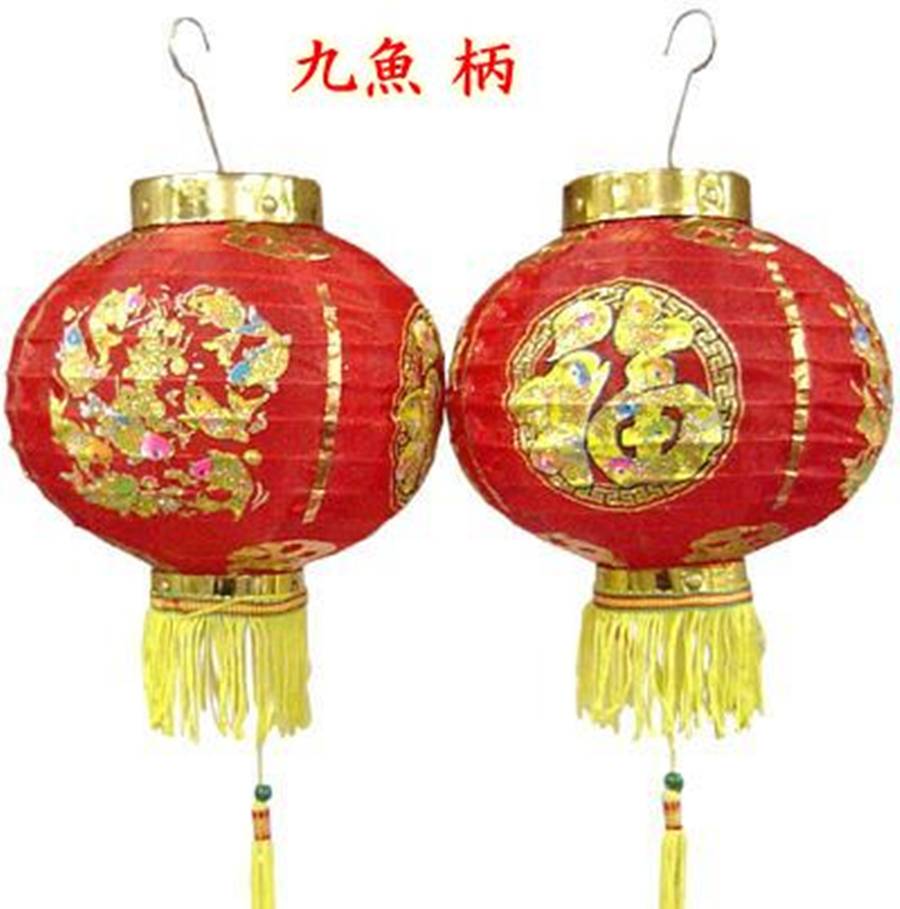 布紅灯 ランタン 吉祥柄 8インチ=径20cm 2個セット 種類お任せ