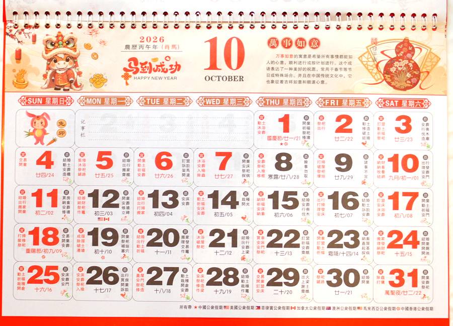 開運風水 2026年度版 中国縁起 壁掛けカレンダー 「駿馬招財」 [ms250903a01]
