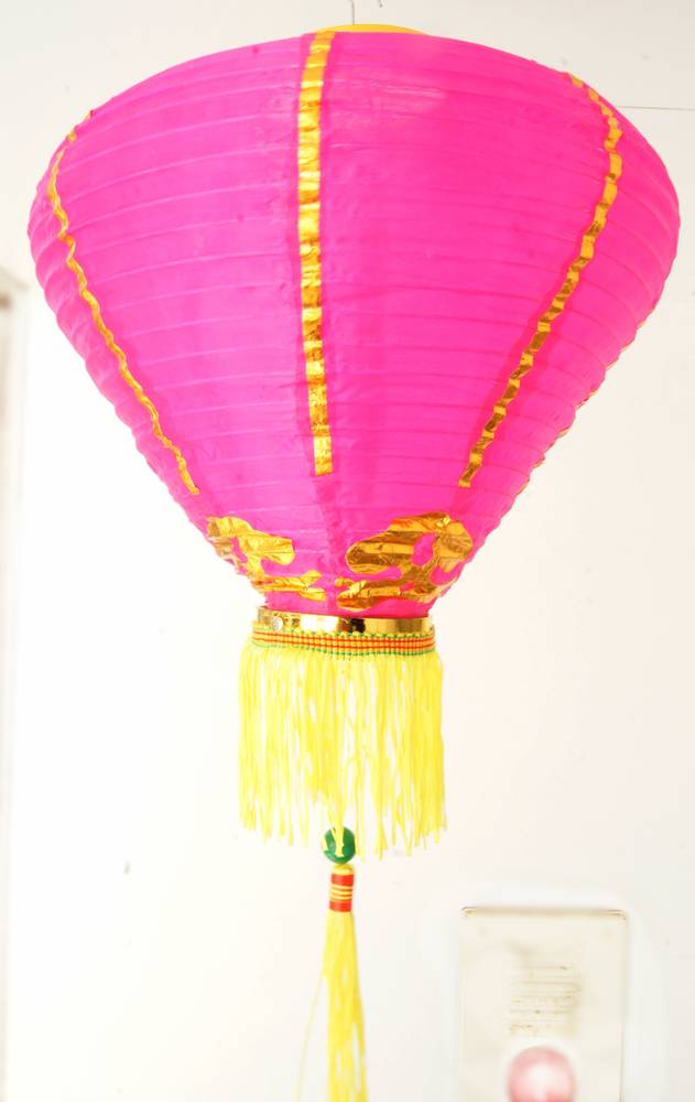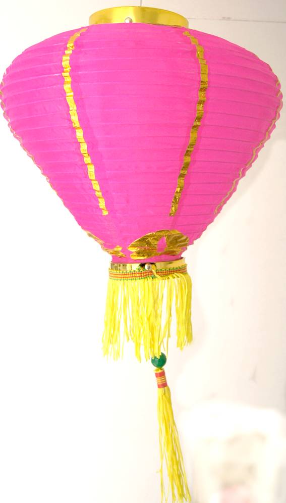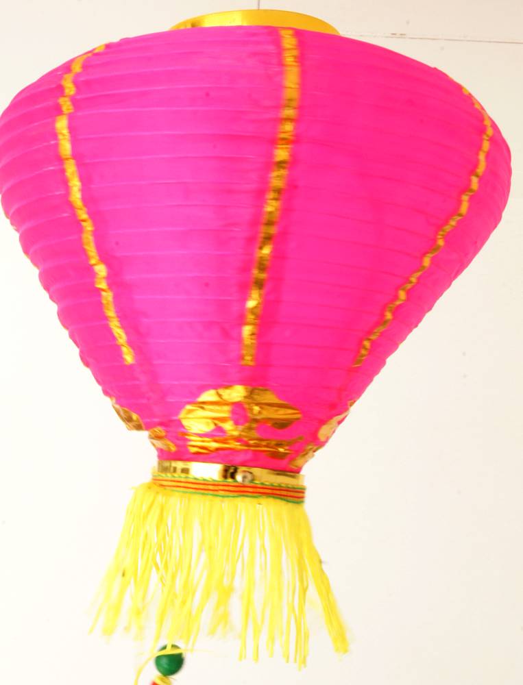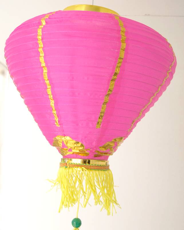 このランタンは、蓮の花をイメージした布製のランタン飾りです。