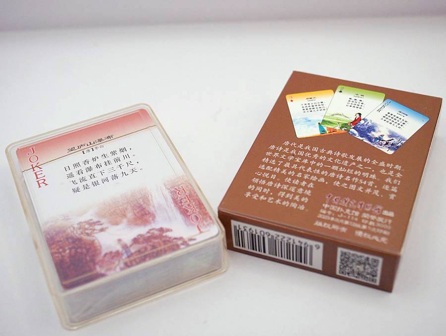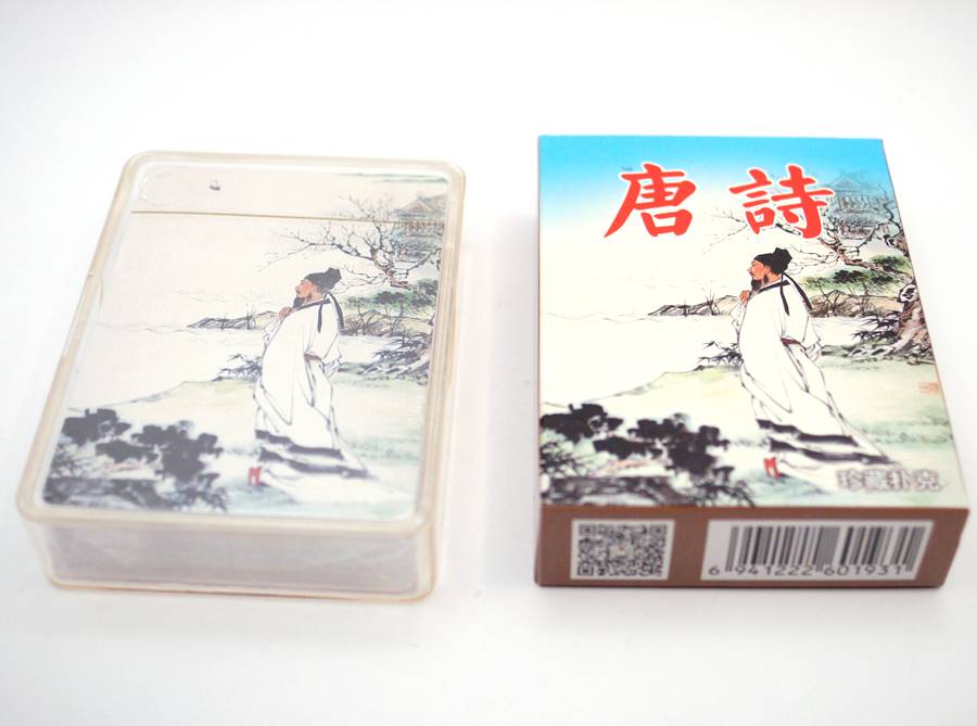 唐代の詩人・李白や白楽天、杜甫、王維等の有名な唐詩が書かれたトランプです。