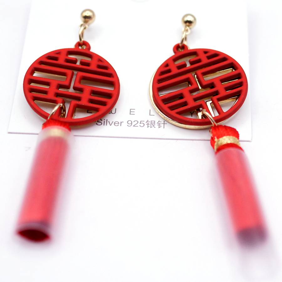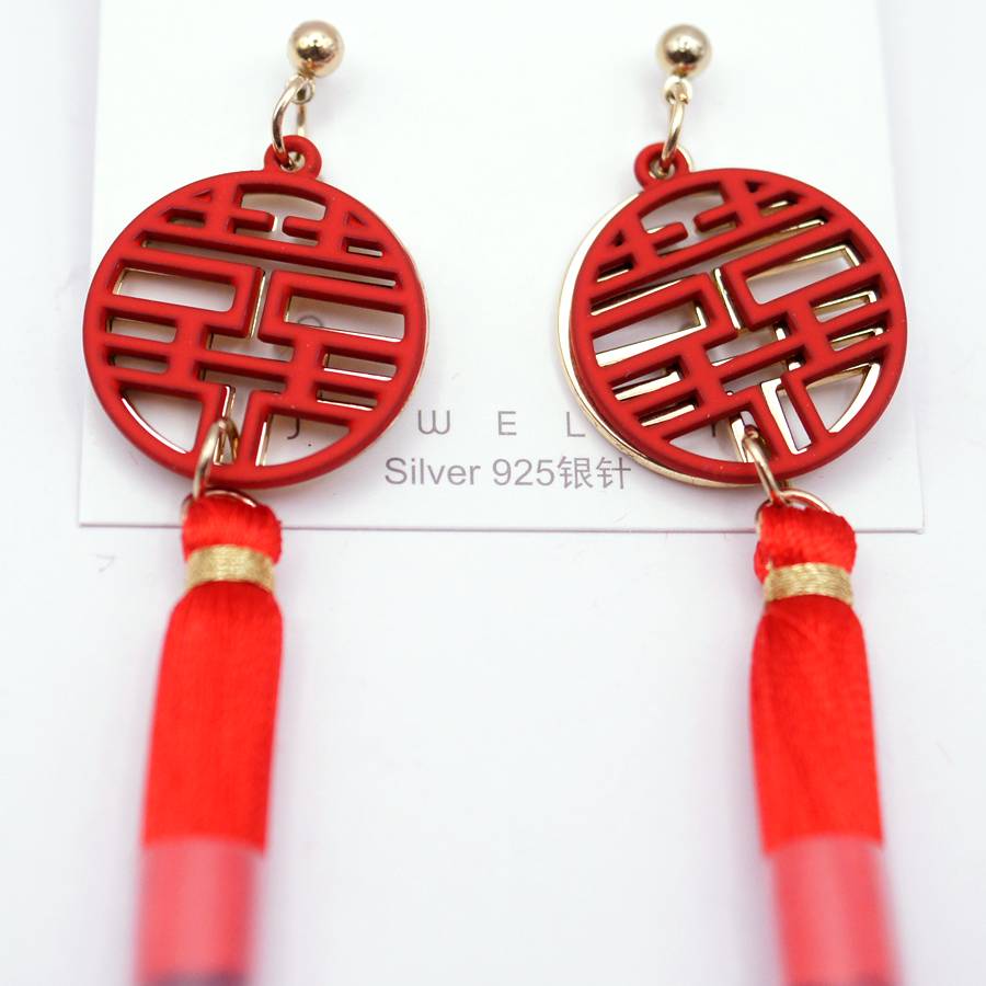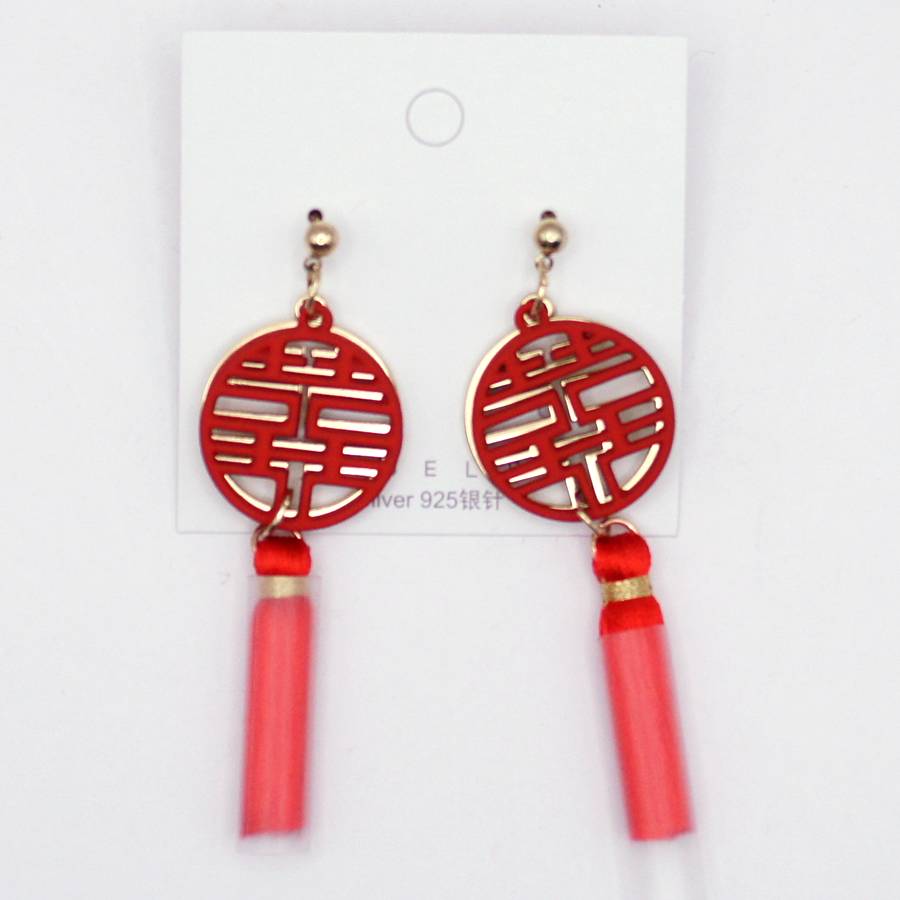 吉祥 中華ピアス 丸双喜ピアス 6.5cm [ms250924a38]