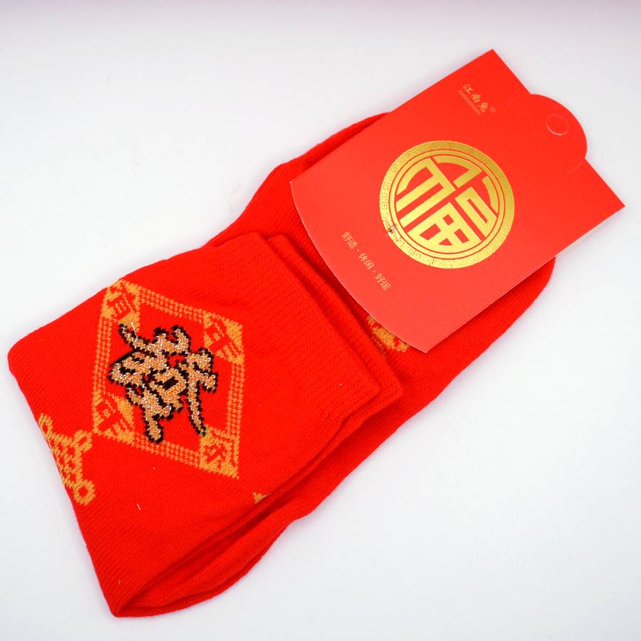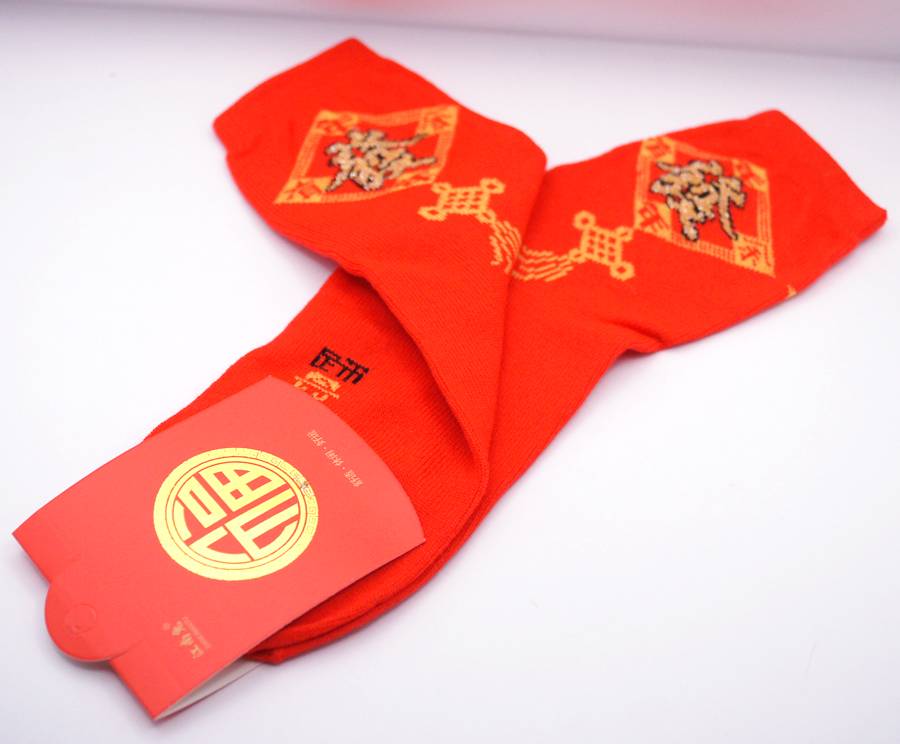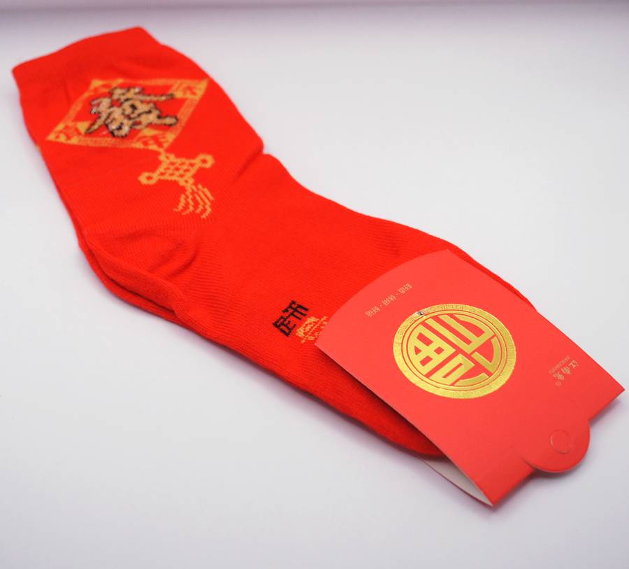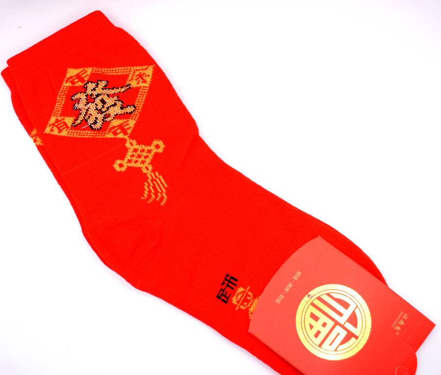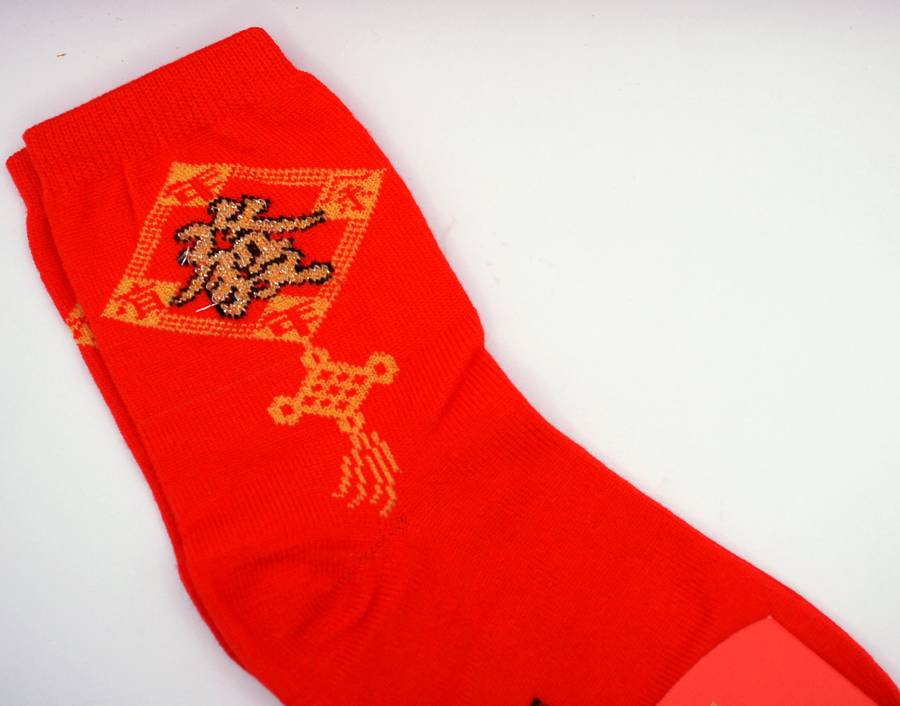 中国で縁起のいい文字は「發」であり、人生に幸福を招く吉祥のデザインとして多くの飾りに利用されており、その文字を大きくワンポイントであしらったソックスです。