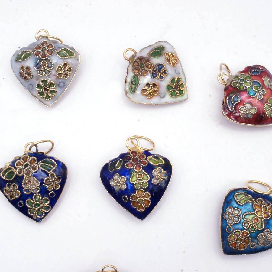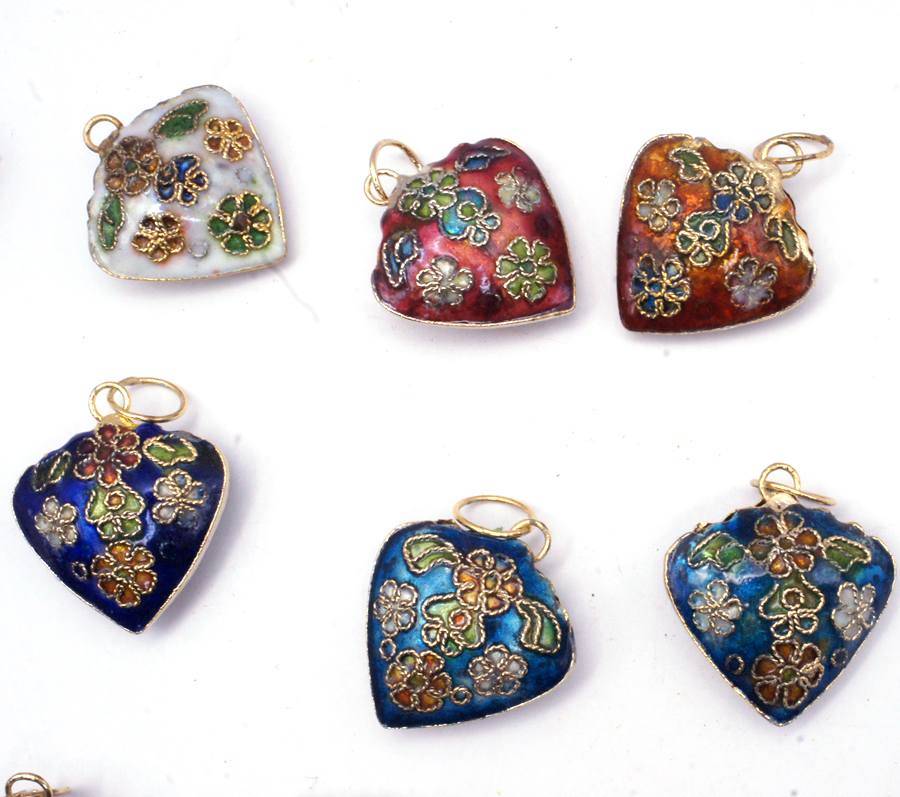 七宝 (景泰藍) 中ハートB アクセサリー TOPパーツ 3個セット