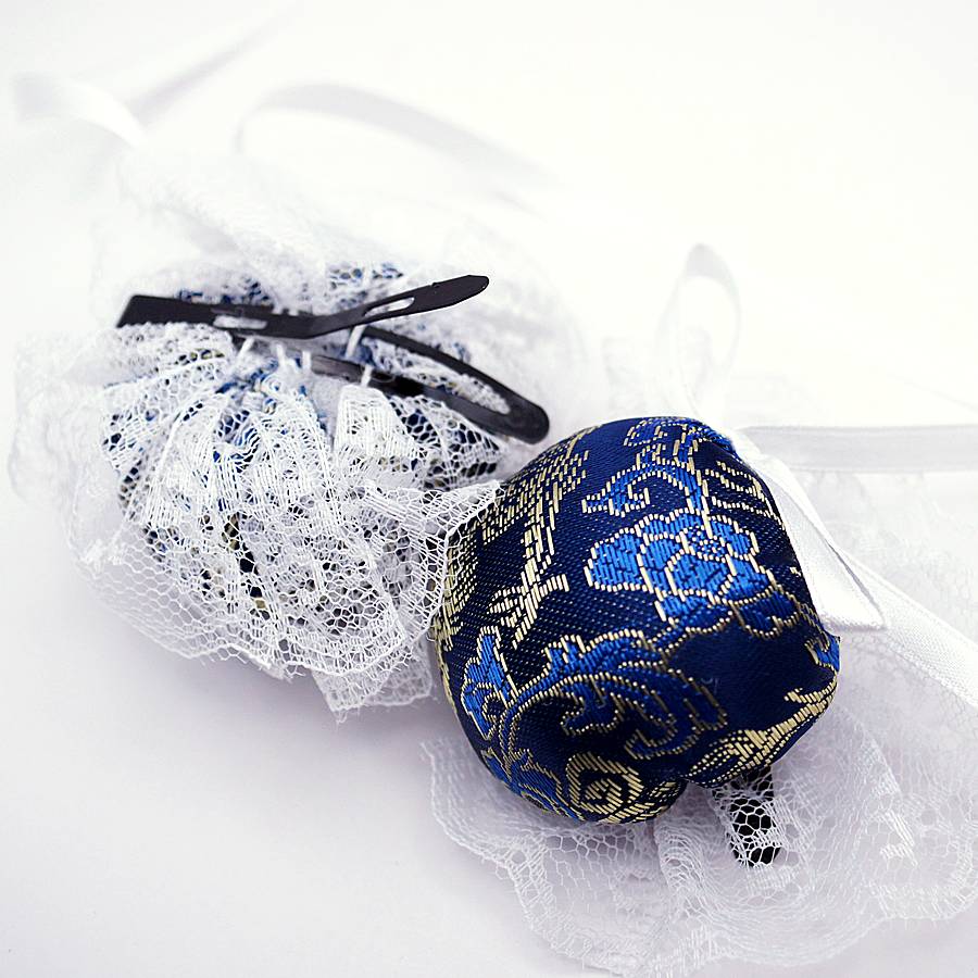 サテンお団子髪飾り(レース、ヘアクリップ付き) 2個1セット【6色】 [ms141118a01]